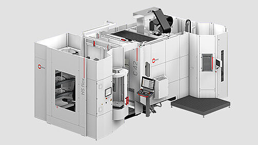 HS flex представляет собой гибкую и компактную систему автоматизации обработки, разработанную компанией Hermle-Leibinger Systemtechnik GmbH для минимизации непроизводительного времени и снижения затрат на рабочую силу. После успешного запуска в апреле 2017 года система стала настоящей историей успеха с более чем 300 установленными системами на станках HERMLE.