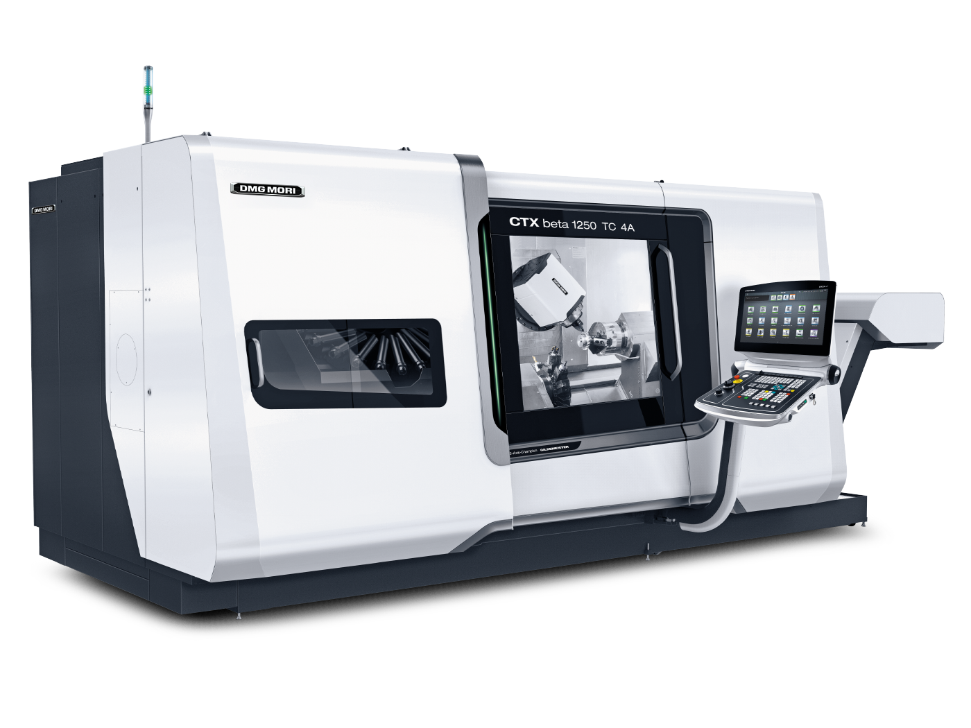 CTX beta 1250 TC 4A — токарно-фрезерный центр с двумя инструментальными носителями для полной обработки деталей ø340×1185 мм. compactMASTER токарно-фрезерный шпиндель 12000 об/мин, 22 кВт, 120 Нм (опция 20000 об/мин). B-ось ±110° с прямым приводом. Револьверная головка 12/16 приводных позиций (VDI40/VDI30). DirectDrive 10000 об/мин с Y-ходом 80 мм. 5-осевая одновременная обработка. Циклы: зубонарезание, шлифование, полигональное точение. SIEMENS, CELOS. Совместимость с Robo2Go, GX, MATRIS, AMR.