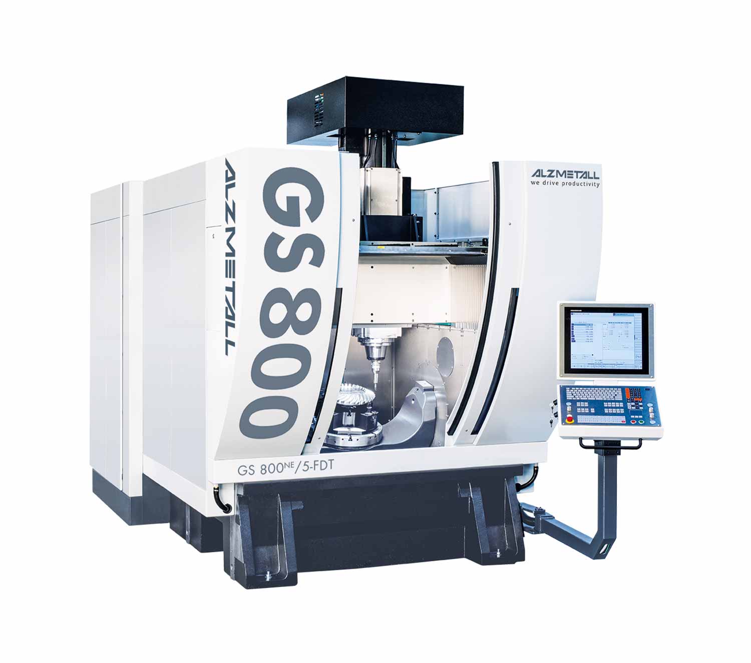 GS 800/5-FDT — универсальный токарно-фрезерный центр ALZMETALL среднего размера с технологией FDT, ходом осей 660/800/550 мм и грузоподъемностью до 500 кг. Объединяет 5-осевое фрезерование, полнофункциональное точение, сверление и шлифование для комплексной обработки деталей средних габаритов за одну установку.
