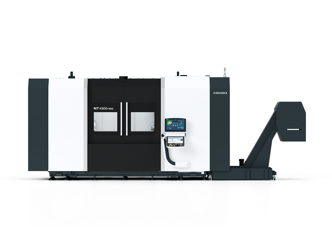NT 4300 DCG / 1000 SZM — токарно-фрезерный центр для деталей ø660×1000 мм. Технология DCG (Driven at Center of Gravity) для высокоточной обработки. Встречный шпиндель 12000 об/мин с наклоном, B-ось ±120° для 5-осевой обработки. Револьверная головка с Y-осью ±105 мм. DDM (Direct Drive Motor) для прецизионного позиционирования. ORC (Octagonal Ram Construction) восьмигранная конструкция. Автосмена инструмента Capto C6, 40 позиций. Ось C 3000 об/мин. Быстрые перемещения: X/Y/Z 50/30/50 м/мин. MSX-711 IV. Пруток 90 мм.