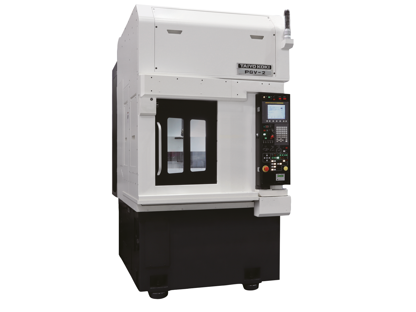 PGV 2 — вертикальный высокопроизводительный шлифовальный станок с ЧПУ (ø 200 мм, высота 200 мм, длина шлифования 200 мм). Шпиндель заготовки 1500 об/мин, шлифовальный шпиндель 18000 об/мин, 2-ACC (автоматическая смена патрона: 1 станция загрузки/выгрузки + 1 станция шлифования), 3 конфигурации шпинделя круга (одношпиндельный ID/OD, двухшпиндельный ID+ID или ID+OD), сокращение площади/затрат менее чем вдвое, FANUC ЧПУ, серийное производство.
