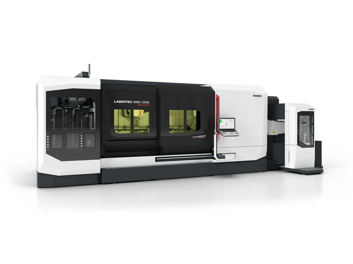 LASERTEC 3000 DED hybrid — гибридный аддитивно-токарный центр с DED (675×300×1562/3062 мм, ø 670×932 мм). Лазер 3000 Вт, 5-осевое коаксиальное сопло. AM Assistant для мониторинга ванны расплава, инновационные комбинации материалов.