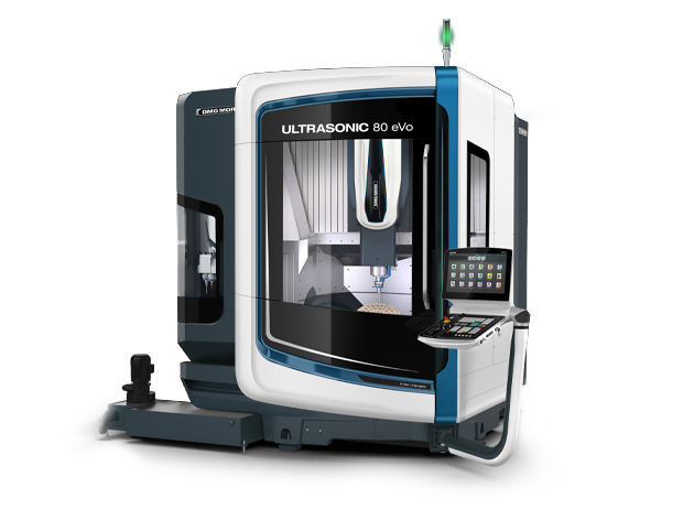 ULTRASONIC 80 eVo linear — крупноформатный 5-осевой центр с ультразвуком (800×650×550 мм, 600 кг). Шпиндель до 24000 об/мин, амплитуда 15 мкм. microDRILL 32000 об/мін, C-ось 1200 об/мін.