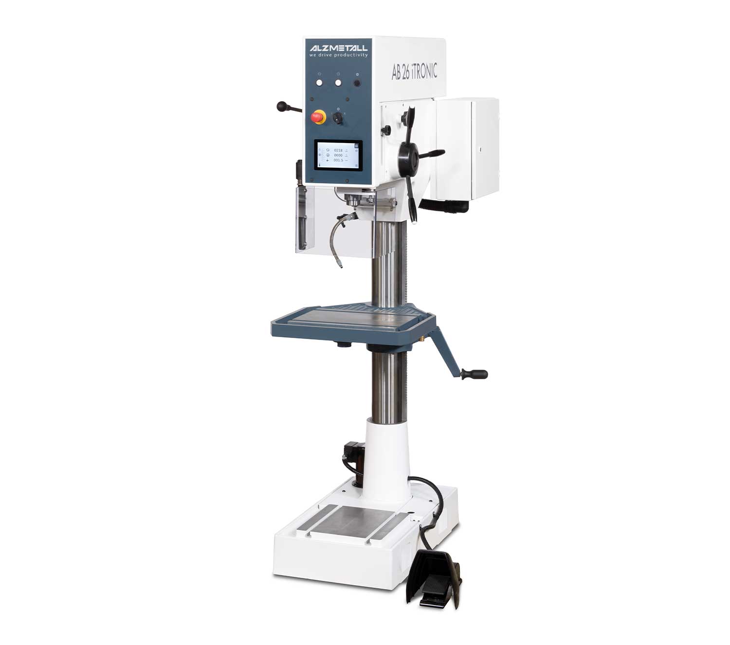 AB 26 iTRONIC — интеллектуальный колонный сверлильный станок с современным 7" TFT LCD Multi-Touch дисплеем для производительного сверления до Ø30 мм в стали E335. Нарезание резьбы до M20. Бесступенчатая регулировка скорости 120-2200 об/мин для универсальной обработки различных материалов.