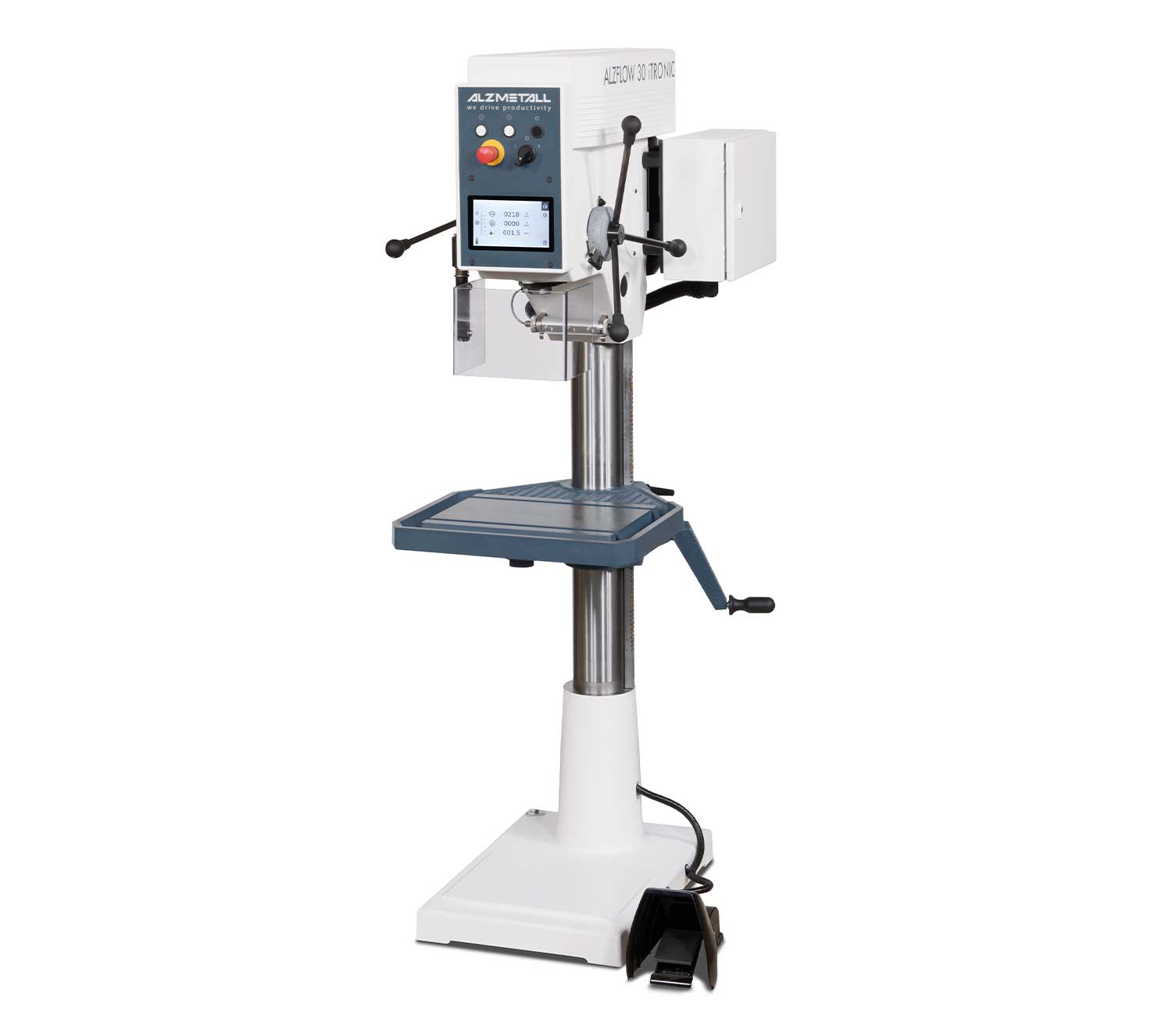 ALZFLOW 30 iTRONIC — специализированный колонный станок с 7" TFT LCD Multi-Touch дисплеем для технологии бесстружечного сверления (flow drilling) до Ø30 мм. Нарезание резьбы до M16. Скорость 225-4300 об/мин оптимизирована для процесса flowdrilling.
