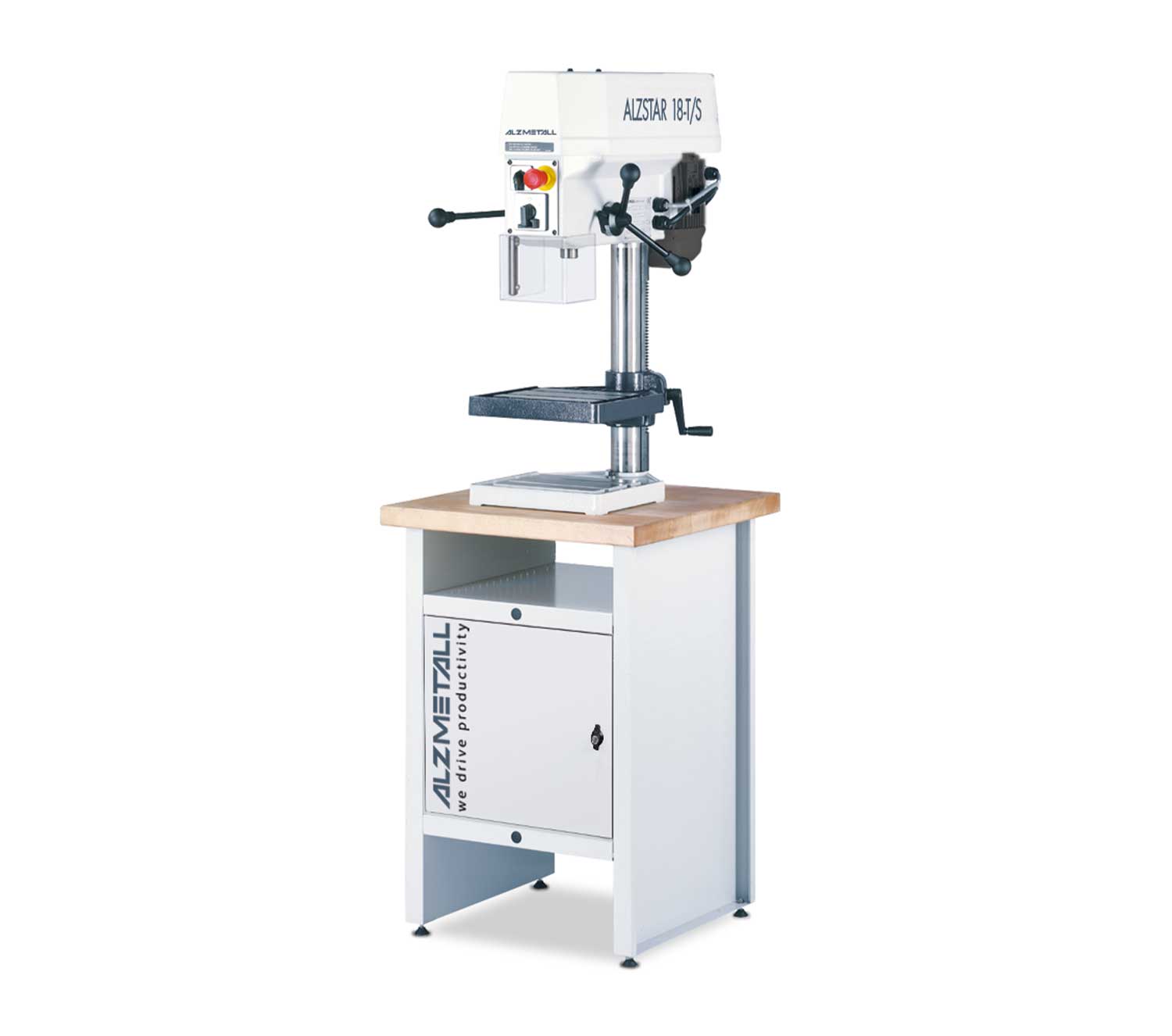 ALZSTAR 18-T/S — настольный сверлильный станок начального уровня из линейки START-UP-Range для ограниченных бюджетов. Максимальная производительность сверления Ø18 мм в стали E335 (St 60). Механический вариатор обеспечивает бесступенчатую регулировку скорости шпинделя 225-4300 об/мин.
