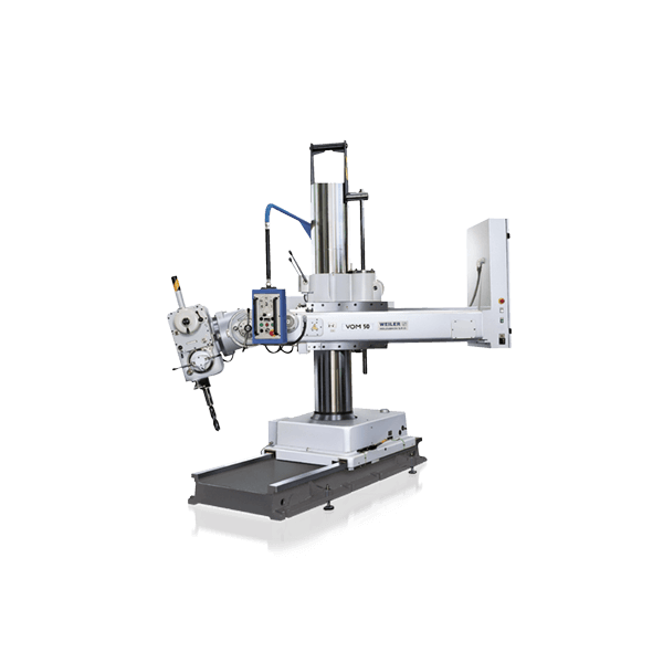 VOM 50 — мобильный сверлильный станок WEILER для работы на объектах. Максимальный диаметр сверления в стали 50 мм, нарезание резьбы M48. Мощность 4 кВт, 15 ступеней скорости 16-800 об/мин. Ход шпинделя 350 мм. Поворот 360°. Идеален для труднодоступных мест.