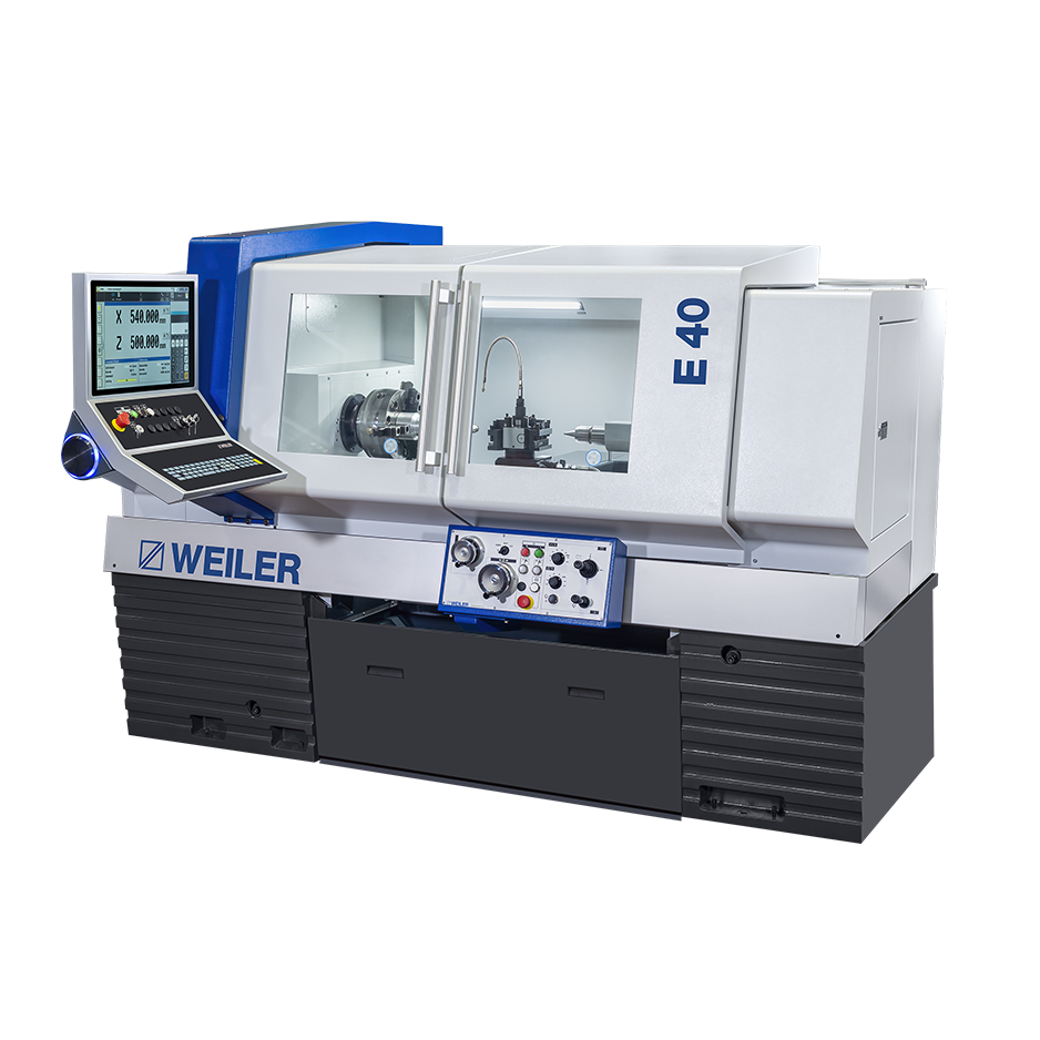 E 40 — компактный токарный станок с цикловым управлением серии WEILER E для универсального производства. Надежная конструкция с графическим управлением, высокая точность по стандарту DIN 8605, система энергосбережения e-TIM. Оптимальное решение для мелкосерийного и среднесерийного производства.