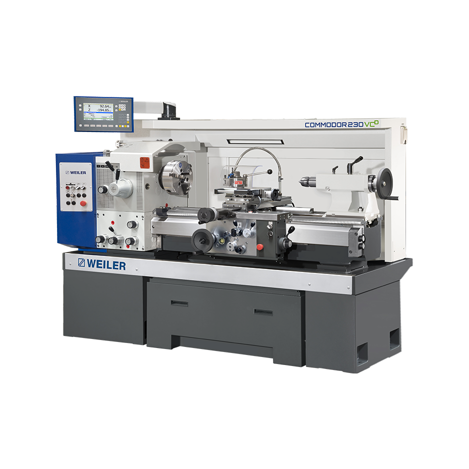 Commodor 230 VCD — крупнейший токарный серии Commodor с увеличенной мощностью. Высота центров 230 мм, диаметр обработки 475 мм, расстояние между центрами 1000 мм. Мощность 11 кВт, скорость 25-2000 об/мин. 320 вариантов подач. Точность DIN 8605.