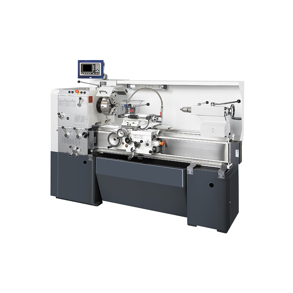 55 вариантов подач: продольные 0.072-2 мм/оборот, поперечные 0.036-1 мм/оборот. Нарезание метрических резьб 0.5-14 мм. Расстояние между центрами 1000 или 1500 мм (опции). Задняя бабка с пинолью 65 мм и ходом 120 мм (конус MK 4). Тормоз шпинделя, светодиодное освещение, защита винтов, цифровой индикатор. Опциональная цифровая индикация.